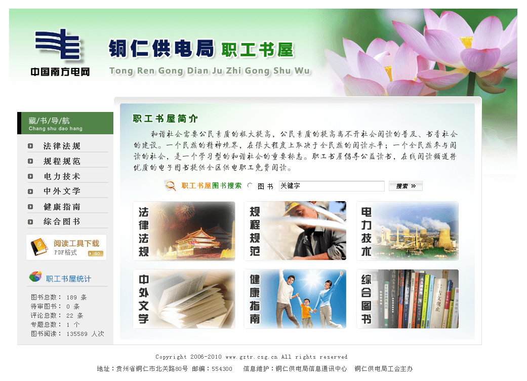 和谐社会需要公民素质的极大提高,公民素质的提高离不开社会阅读的普及、书香社会的建设。一个民族的精神境界,在很大程度上取决于全民族的阅读水平;一个全民族参与阅读的社会,是一个学习型的和谐社会的重要标志。职工书屋倡导公益读书,在线阅读频道将优质的电子图书提供全区供电职工免费阅读。