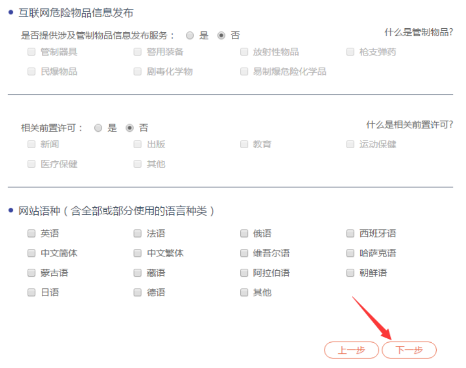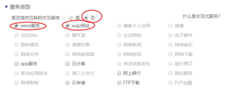 其他内容根据当前网站情况自行勾选,如果表格中没有您的网站服务内容,则选择【否】